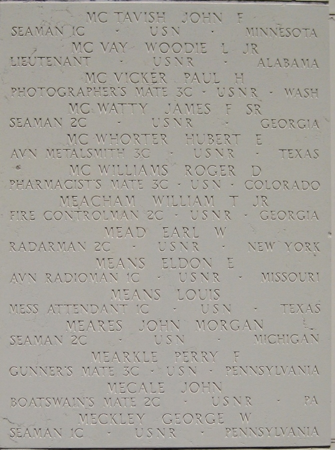 James F. McWatty Sr. served in the United States Naval Reserve as a Seaman Second Class during World War II. He died on July 24, 1944, during the Battle for Guam.