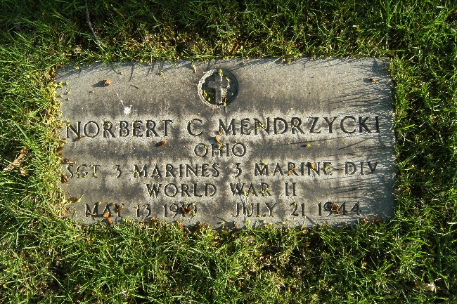 Norbert Carlo Mendrzycki was born on May 13, 1919. He served in the Headquarters Company, 3rd Battalion, 3rd Marine Regiment, 3rd Marine Division as a Sergeant during World War II. He died on July 21, 1944, during the Battle for Guam.