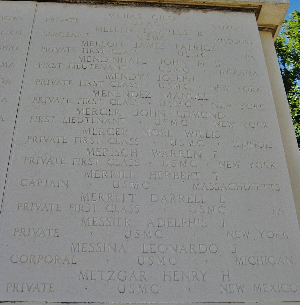 Warren Frederick Merisch served in the Headquarters and Service Company, 21st Marine Regiment, 3rd Marine Division as a Private First Class during World War II. He died from his wounds received in battle on July 28, 1944, during the Battle for Guam.