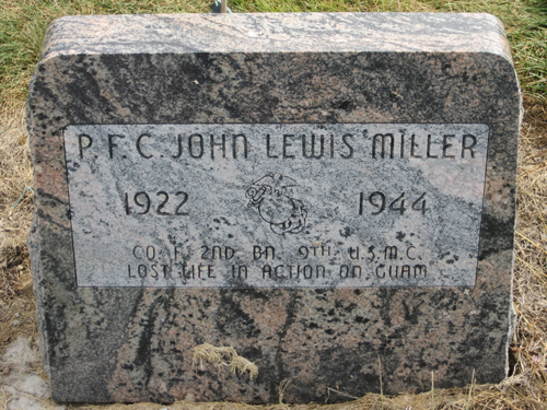 He served in Company F, 2nd Battalion, 9th Marine Regiment, 3rd Marine Division as a Private First Class during World War II. He was Killed in Action on July 25, 1944, during the Battle for Guam.