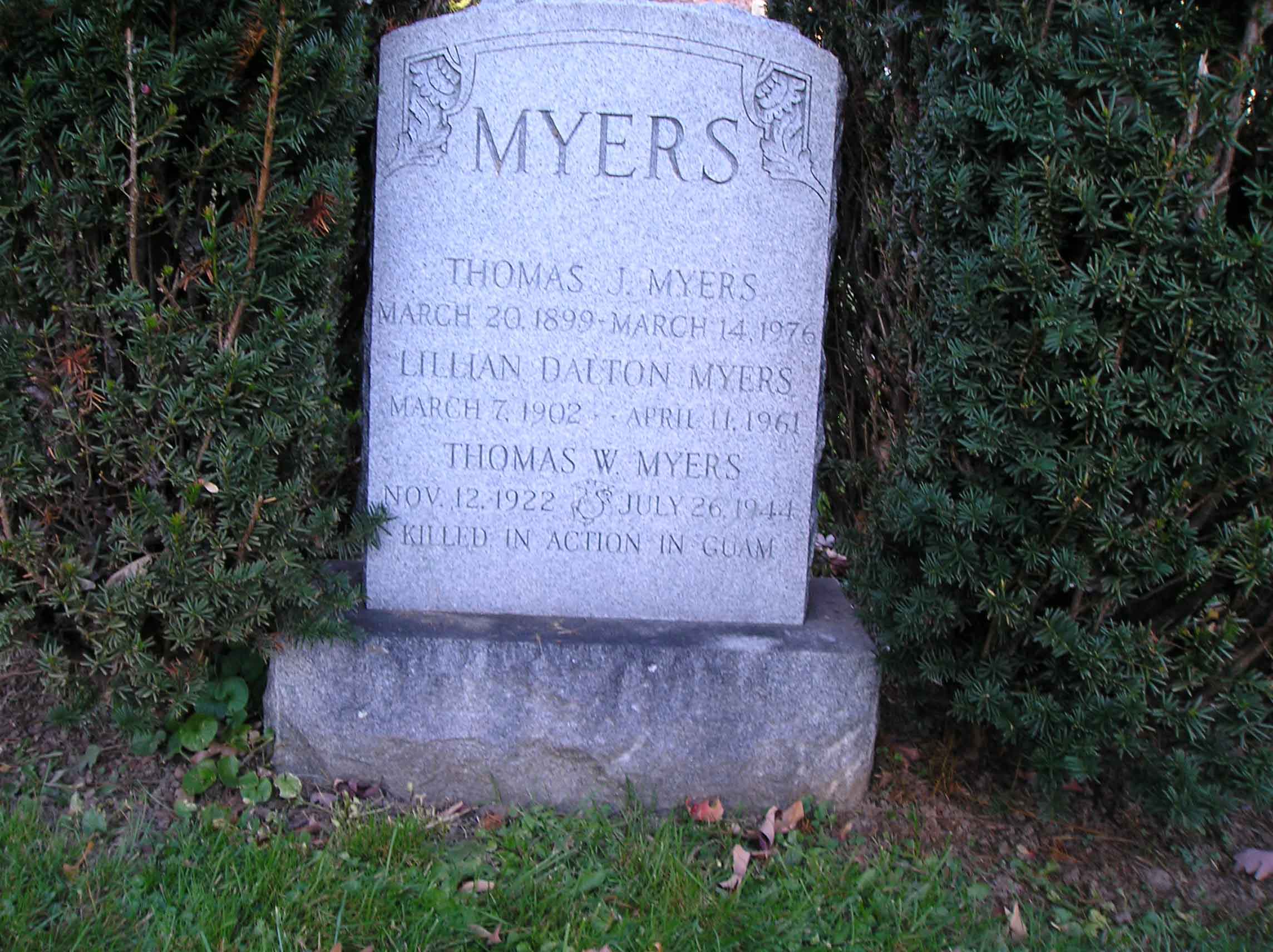 Thomas William Myers was born on November 12, 1922. He was the son of Thomas J. Myers and Lillian Dalton Myers.