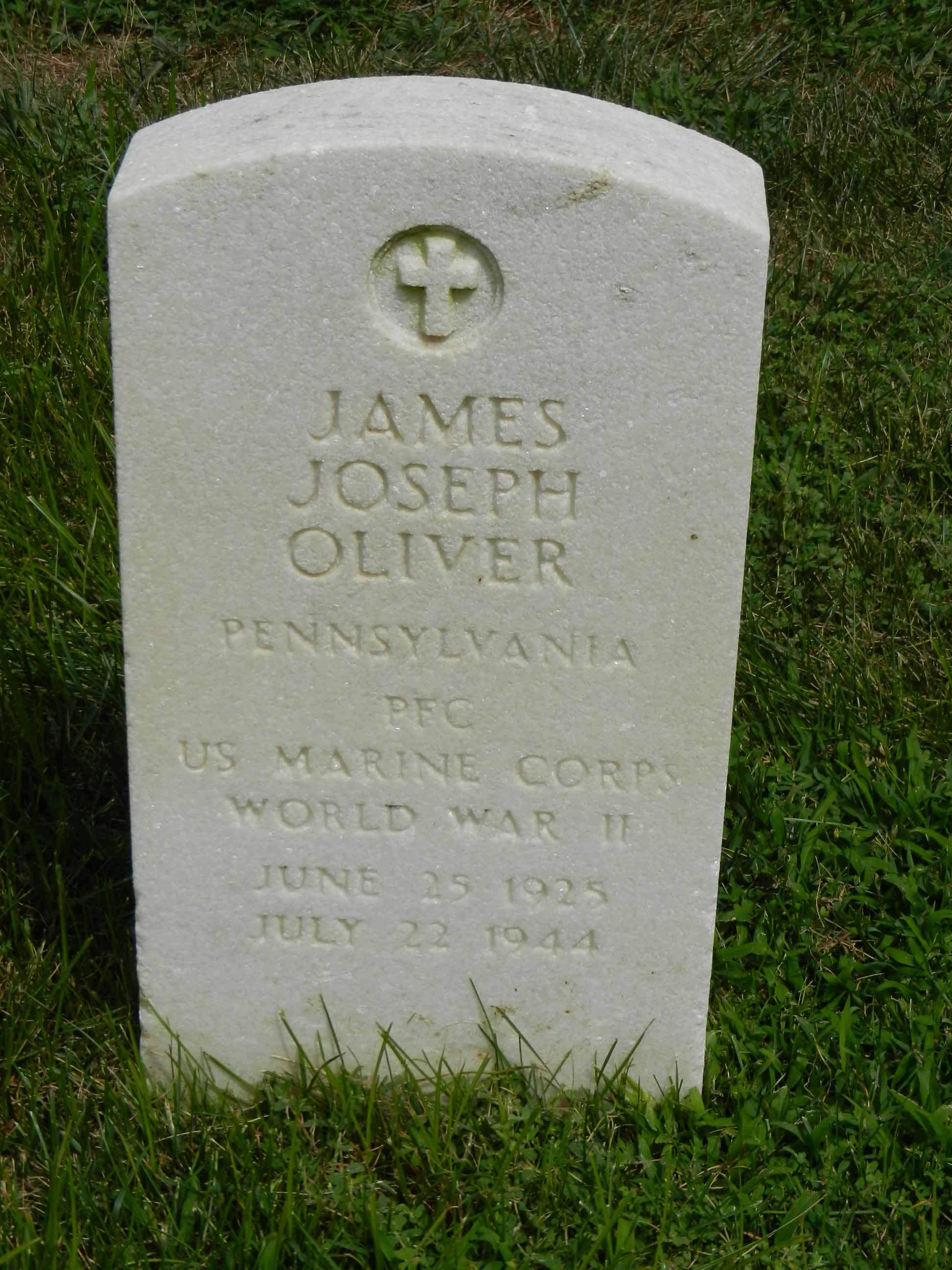 James Joseph Oliver was born on June 25, 1925. He served in Company G, 2nd Battalion, 3rd Marine Regiment, 3rd Marine Division as a Private First Class during World War II. He was Killed in Action on July 22, 1944, during the Battle for Guam.