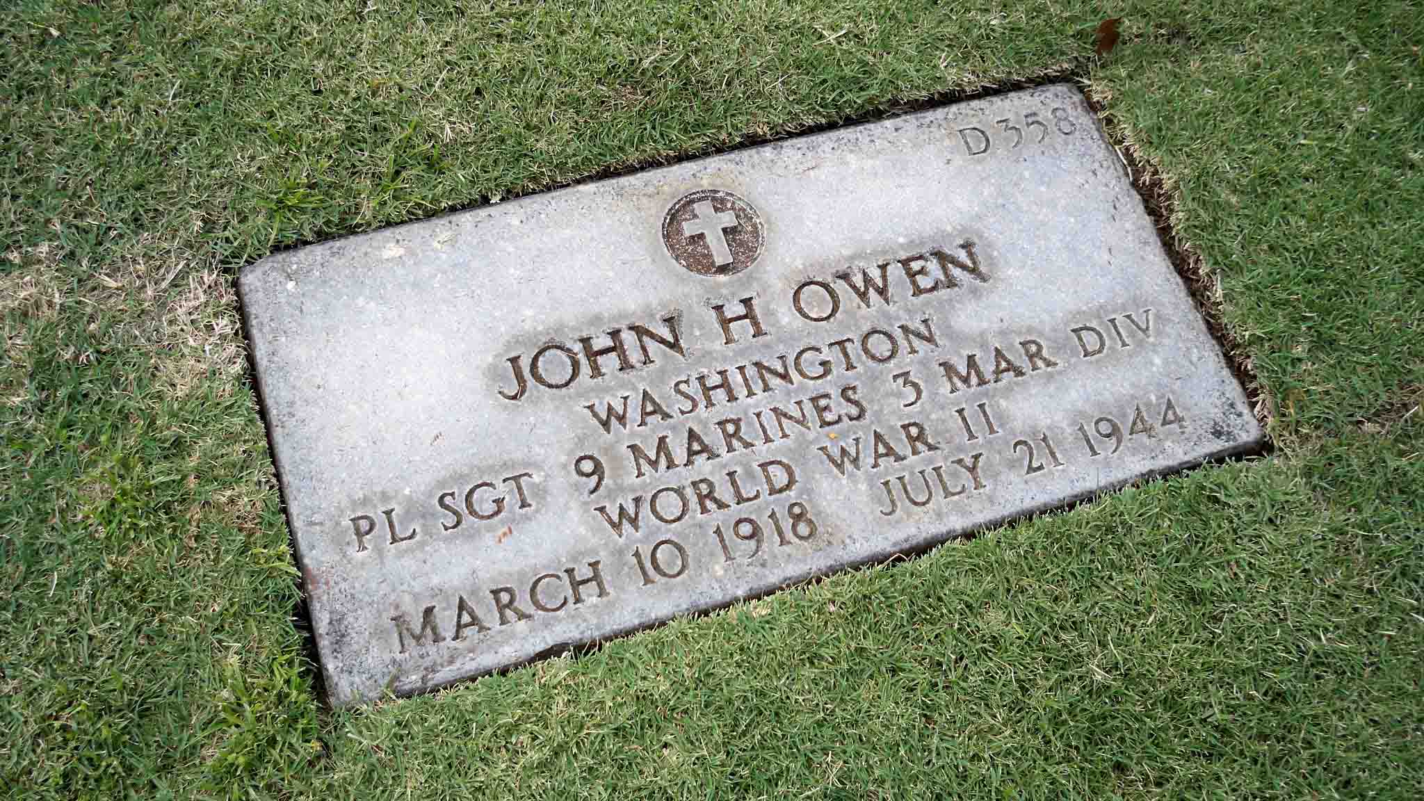 John Howard Owen was born on March 10, 1918. He served in Company G, 2nd Battalion, 9th Marine Regiment, 3rd Marine Division as a Sergeant during World War II. he was Killed in Action on July 21, 1944, during the Battle for Guam.