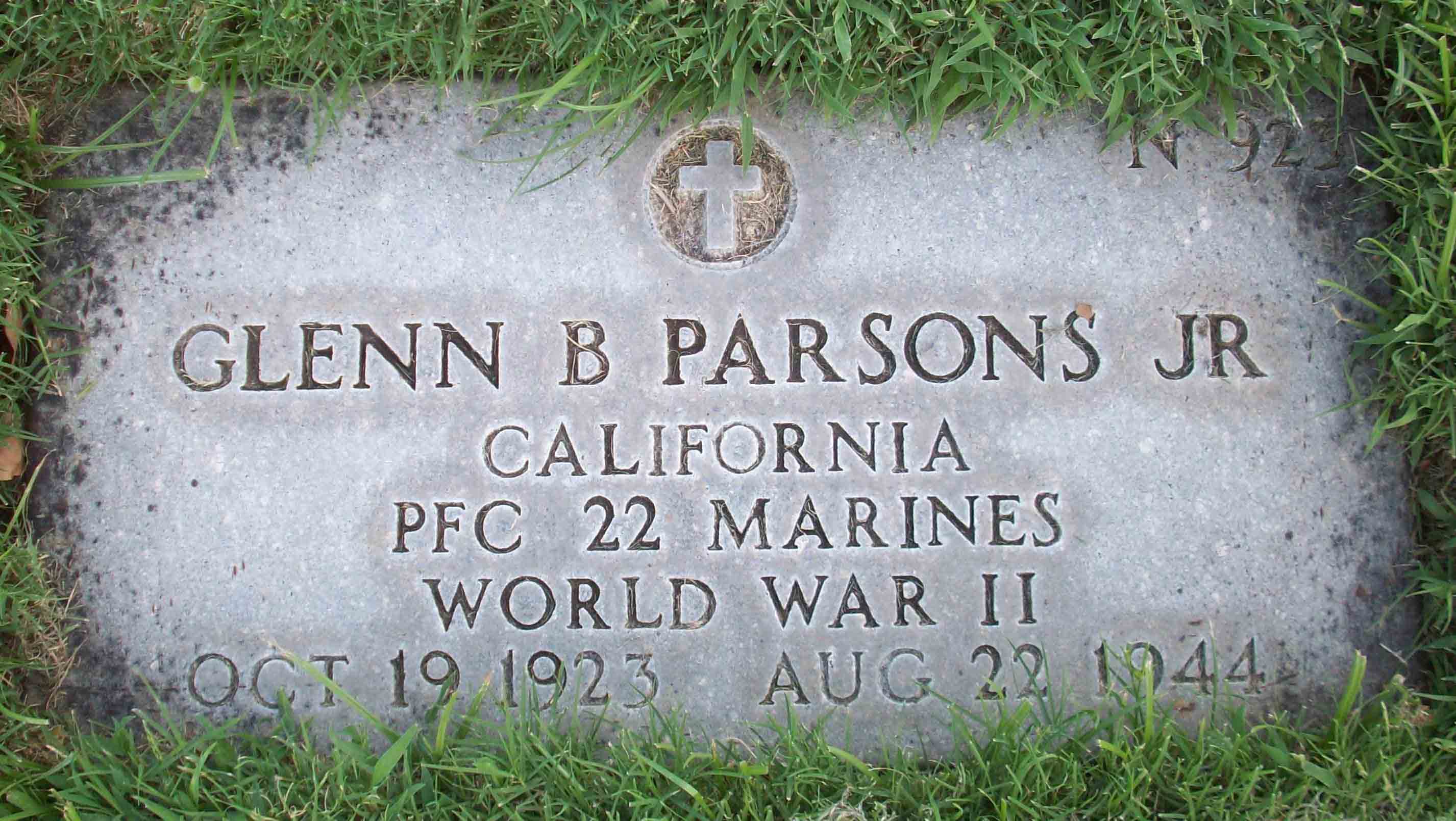 Glenn B. Parsons Jr. was born on October 19, 1923. He served in the 22nd Marine Regiment, 1st Provisional Marine Brigade as a Private First Class during World War II. He died on August 22, 1944, during the Battle for Guam.