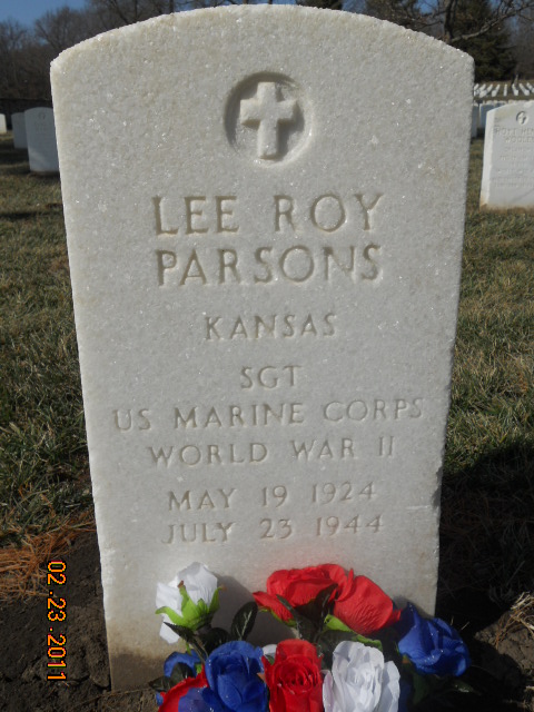 Lee Roy Parsons was born on May 19, 1924. He was the son of Mildred Bryant Parsons. He served in Company K, 3rd Battalion, 9th Marine Regiment, 3rd Marine Division as a Sergeant during World War II. He was Killed in Action on July 23, 1944, during the Battle for Guam.