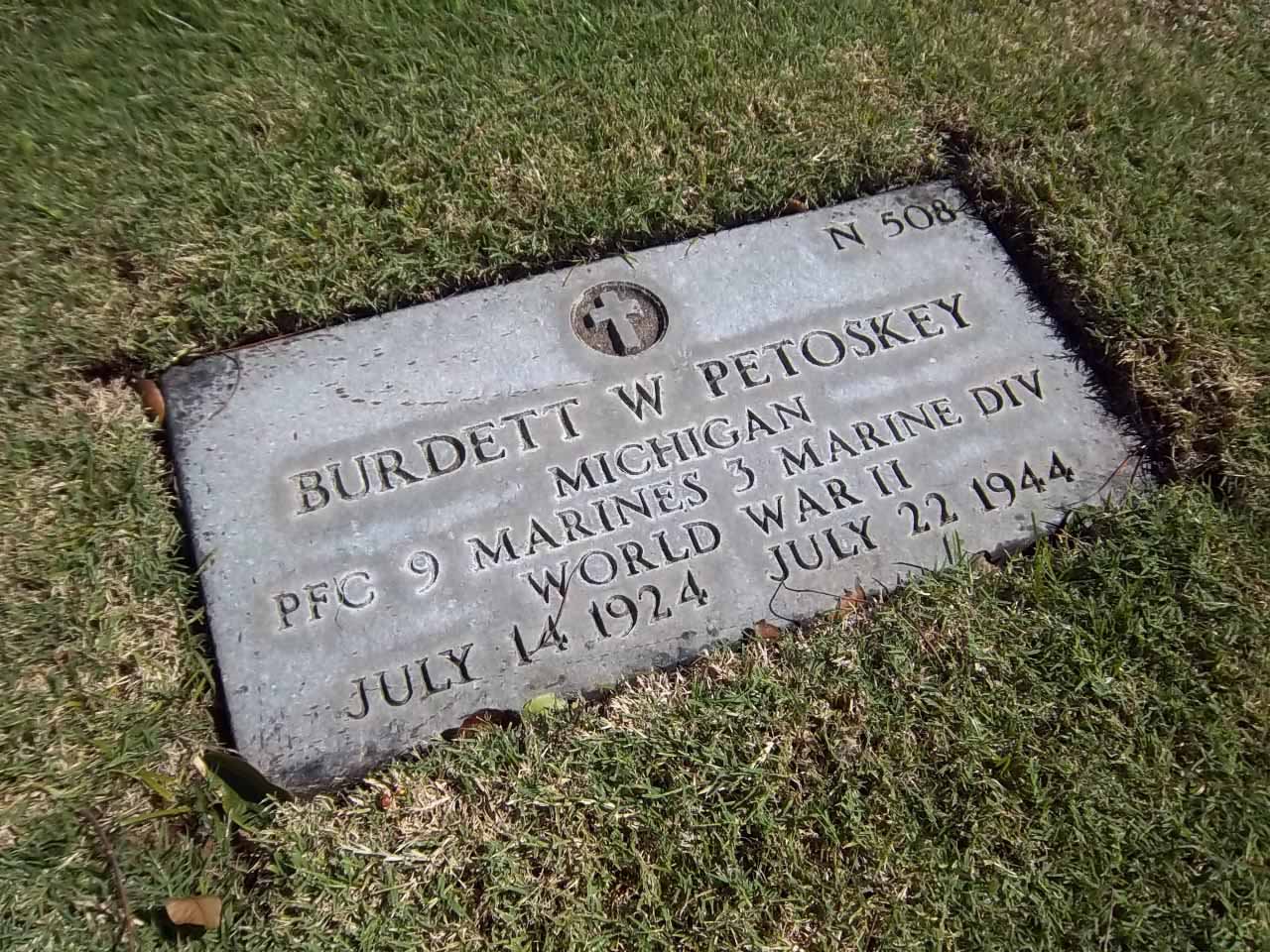 Burdett Wayne Petoskey was born on July 14, 1924, in Stanwood, Mecosta County, Michigan. He was the son of Alexander P. Petoskey and Nola B. Quigley Petoskey.