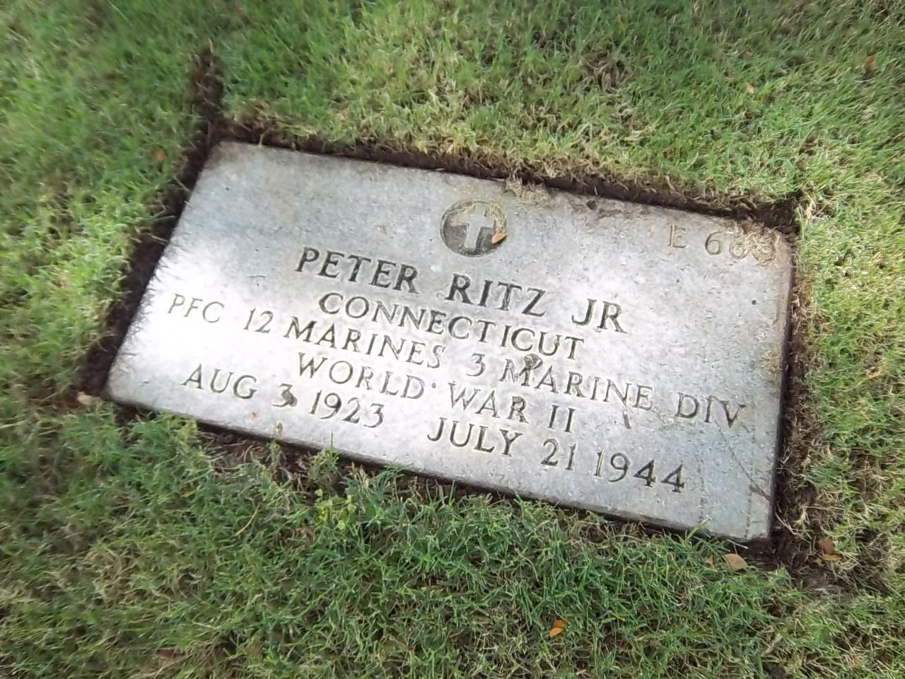 Peter Ritz Jr. was born on August 3, 1923. He served in Battery A, 1st Battalion, 12th Marine Regiment, 3rd Marine Division as a Private First Class during World War II. He was Killed in Action on July 21, 1944, during the Battle for Guam.