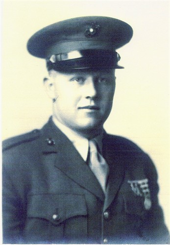 He served in Company B, 1st Battalion, 4th Marine Regiment, 1st Provisional Marine Brigade as a First Lieutenant during World War II. He was Killed in Action on July 21, 1944, during the Battle for Guam.