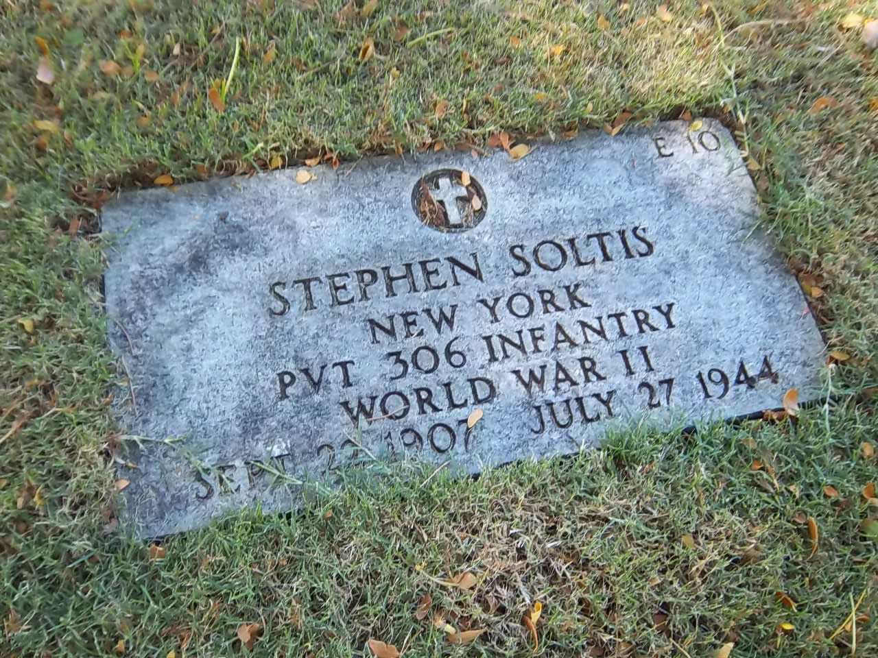 Stephen Soltis was born on September 22, 1907, in Terre Haute, Vigo County, Indiana. He served in the 306th Infantry Regiment, 77th Infantry Division as a Private during World War II. He was Killed in Action on July 27, 1944, during the Battle for Guam.