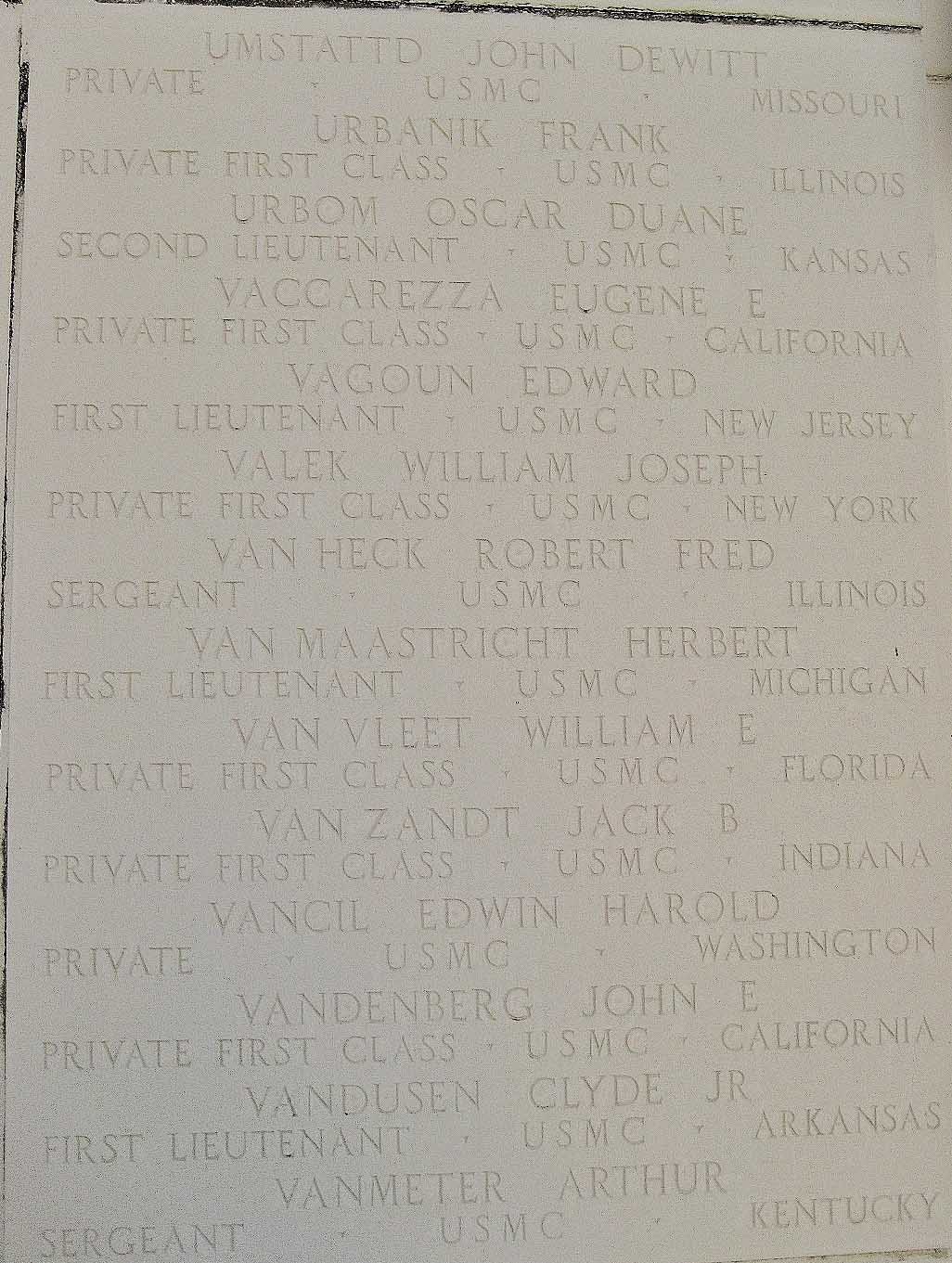 He served in the Headquarters Company, 2nd Battalion, 21st Marine Regiment, 3rd Marine Division as a Private First Class during World War II. He died from his wounds received in battle on July 21, 1944, during the Battle for Guam. He was buried at sea but he has a cenotaph in Our Lady of Angels Cemetery, Colonie, Albany County, New York, USA.