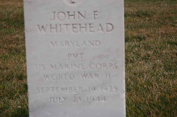 John Franklin Whitehead was born on September 19, 1925. He was the son of Sally Whitehead. He served in Company E, 2nd Battalion, 3rd Marine Regiment, 3rd Marine Division as a Private during World War II. He was Killed in Action on July 23, 1944, during the Battle for Guam.