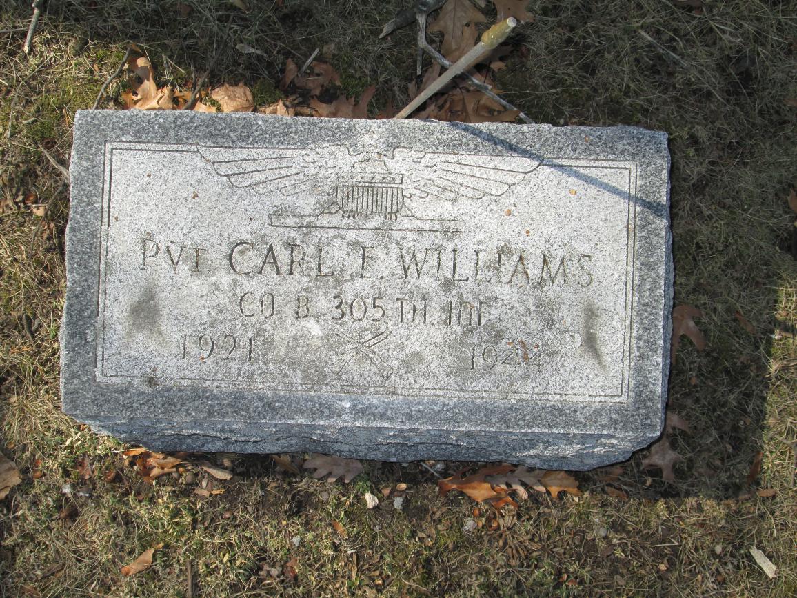 Carl F. Williams was born in 1921. He was the son of Frieda Clara Bauman Williams. He served in Company B, 305th Infantry Regiment, 77th Division as a Private during World War II. He died in 1944, during the Battle for Guam.