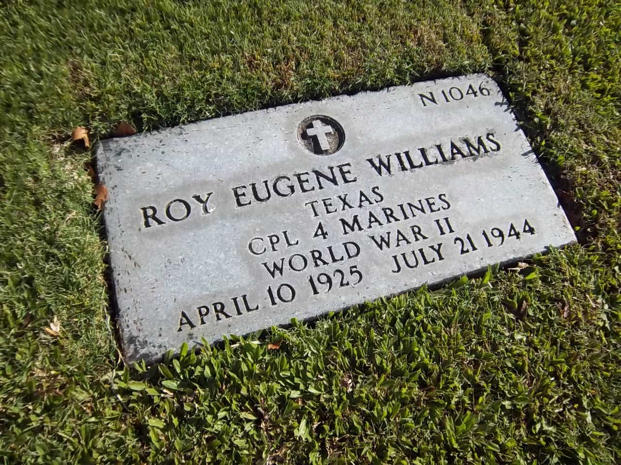 Roy Eugene Williams was born on April 10, 1925. He served in Company I, 3rd Battalion, 4th Marine Regiment, 1st Provisional Marine Brigade as a Corporal during World War II. He was Killed in Action on July 21, 1944, during the Battle for Guam.