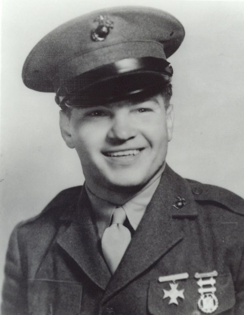 He served in Company B, 1st Battalion, 9th Marine Regiment, 3rd Marine Division as a Private First Class during World War II. He was Killed in Action on August 3, 1944, during the Battle for Guam.