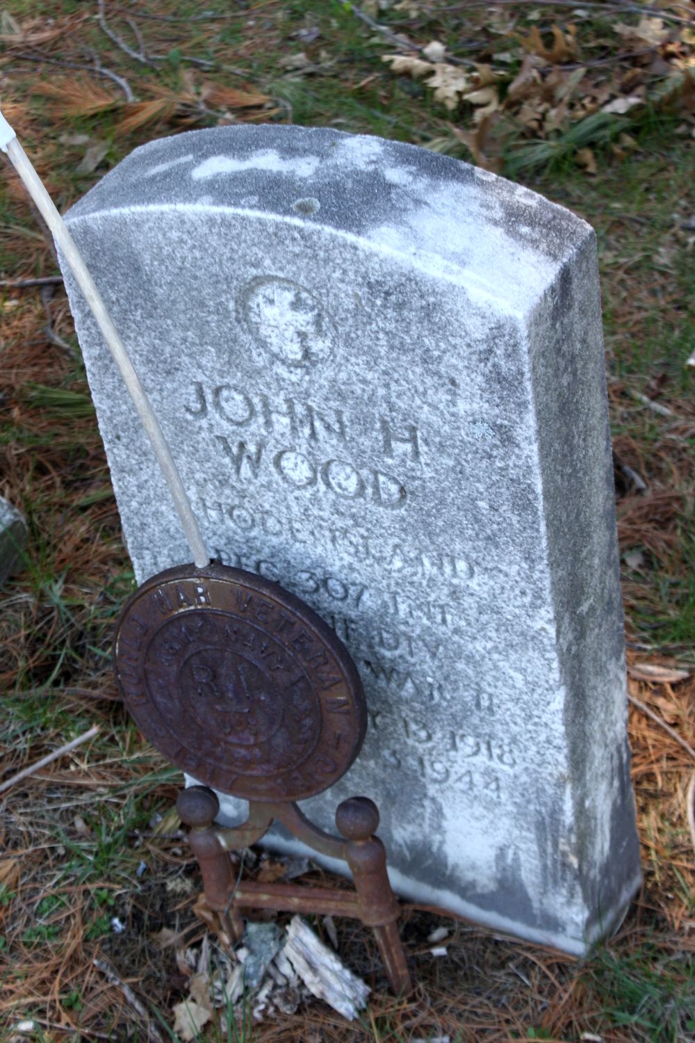 John H. Wood was born on February 13, 1918. He was the husband of Rebecca Wood. He served in the 307th Infantry Regiment, 77th Division as a Private First Class during World War II. He died on August 3, 1944, during the Battle for Guam.