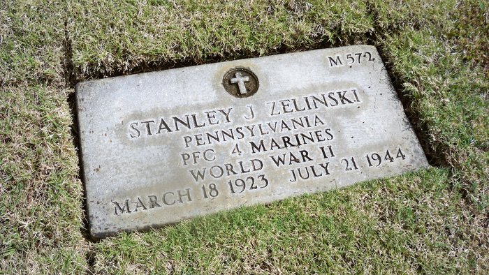 Stanley John Zelinski was born on March 18, 1923. He served in Company C, 1st Battalion, 4th Marine Regiment, 1st Provisional Marine Brigade as a Private First Class during World War II. He was Killed in Action on July 21, 1944, during the Battle for Guam.