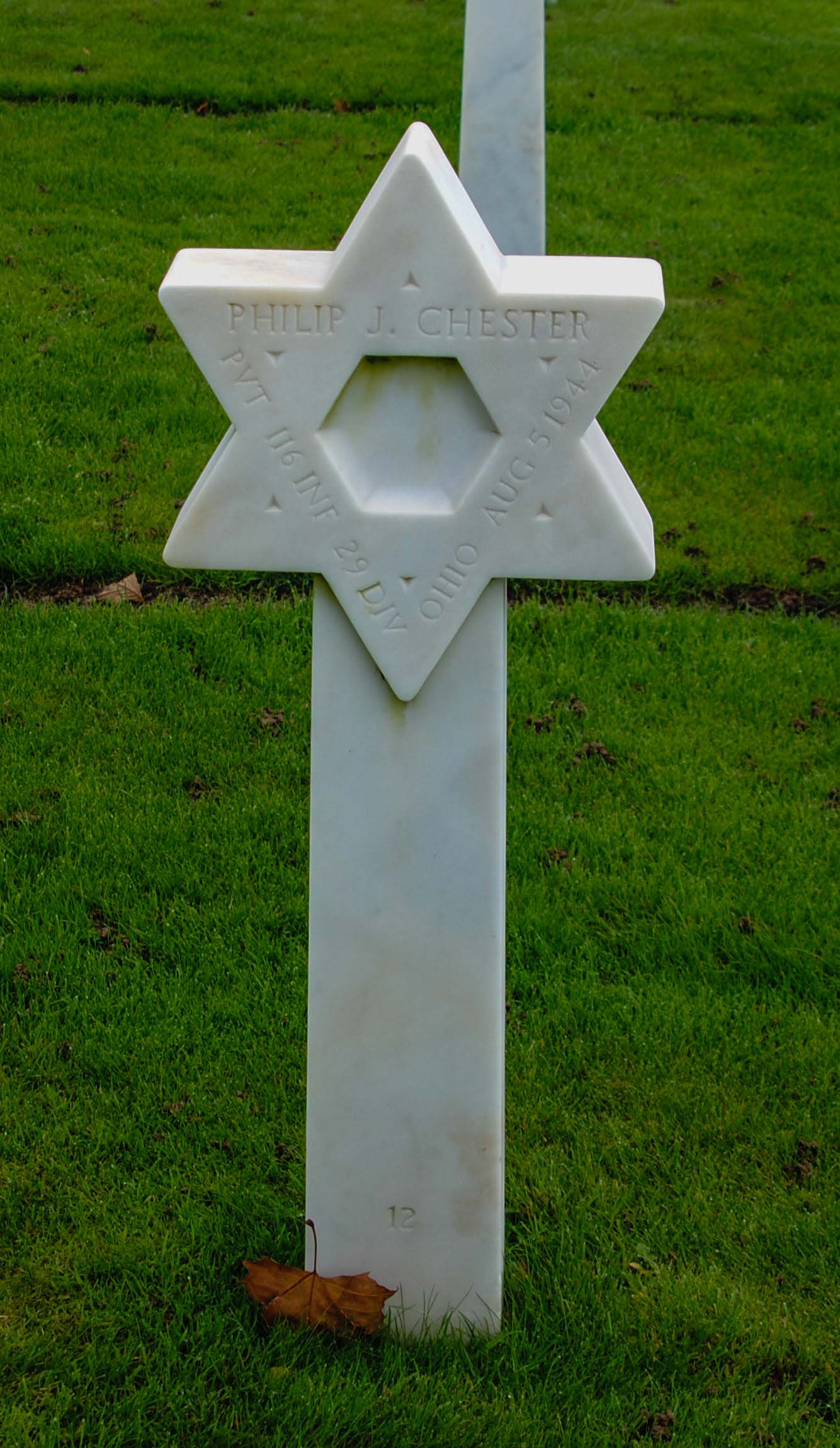 Philip served in the 116th Infantry Regiment, 29th Infantry Division, as a Private during World War II. He was Killed in Action on August 5, 1944, during the liberation of Vire, France. Pvt Chester is now buried in the Brittany American Cemetery and Memorial, Saint-James, Departement de la Manche, Basse-Normandie, France.