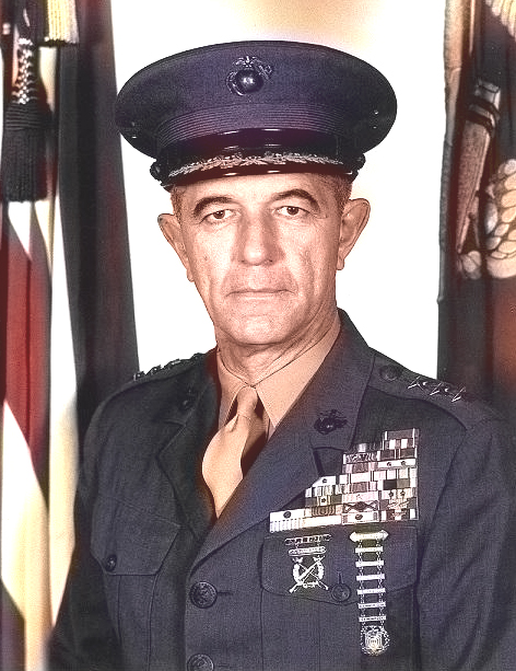 During the Korean War, he led the 7th Marine Regiment in key battles, including the Battle of Inchon and the Battle of the Punch Bowl. Following the war, he held senior leadership positions, including Director of the Senior School at Quantico, and was promoted to brigadier general in 1959 and major general in 1962. In the Vietnam War, he commanded the 1st Marine Division and later the III Marine Amphibious Force (III MAF), overseeing major operations and implementing counterinsurgency programs. His leadership in Vietnam earned him multiple commendations, including two Navy Distinguished Service Medals. After retiring in 1970, he worked with the National Credit Union Administration and wrote a book on leadership. LtGen Nickerson died on December 27, 2000, and is now buried in the Maplewood Cemetery, Lincolnville, Waldo County, Maine, USA.