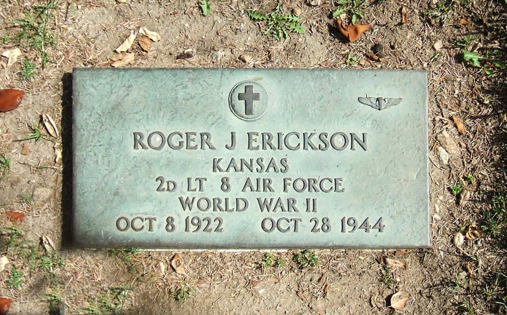 2Lt Erickson is now buried in the Glen Haven Memorial Park, Sylmar, Los Angeles County, California, USA. Roger J. Erickson's name is inscribed on the Anstey Window Memorial in Panel 2 (center), on Butterfly 7, in the bottom right wing (section D).