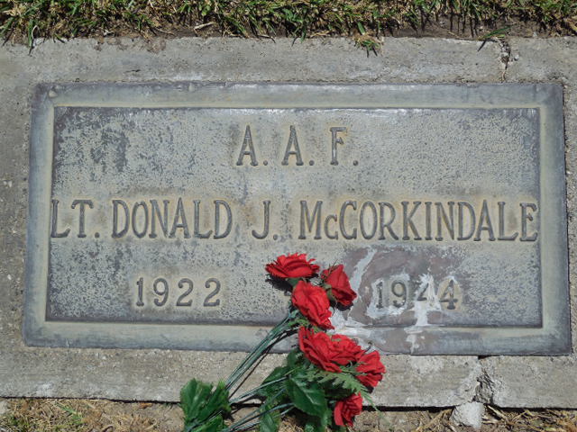 2Lt McCorkindale was Killed in Action and is now buried in the Forest Lawn Memorial Park, Long Beach, Los Angeles County, California, USA. Donald J. McCorkindale's name is inscribed on the Anstey Window Memorial in Panel 1 (left), on Butterfly 1, in the top left wing (section A).