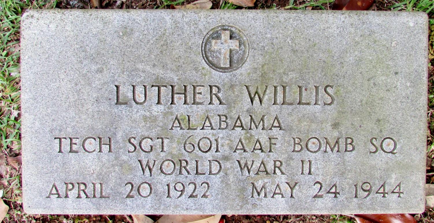 Luther Willis was born on April 20, 1922, in St. Clair County, Alabama. He was the son of Charles Allen Willis and Limana M. Willis. He served in the 601st Bomber Squadron, 398th Bomb Group, Heavy, as a Technical Sergeant and Top Turret Gunner of B-17 #42-107132 during World War II.