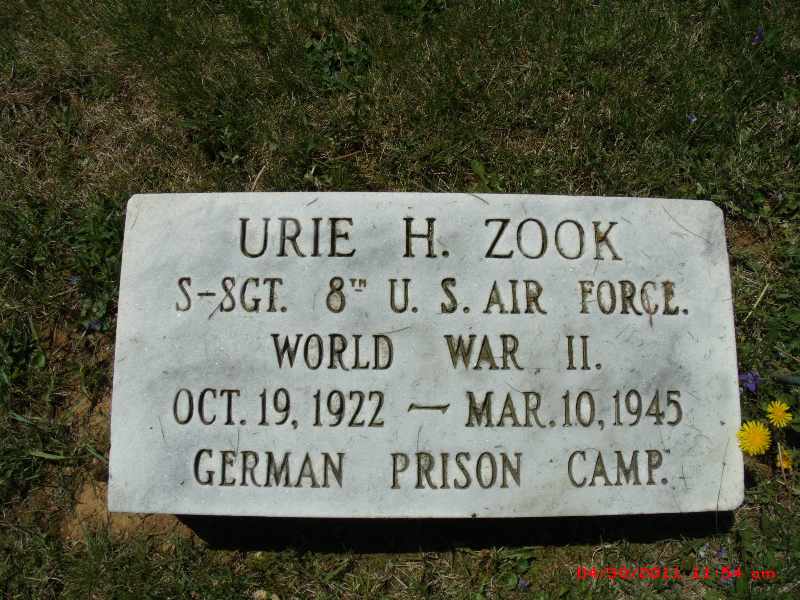 SSgt Zook is now buried in the Locust Grove Cemetery, Belleville, Mifflin County, Pennsylvania, USA. Urie H. Zook's name is inscribed on the Anstey Window Memorial in Panel 2 (center), on Butterfly 10, in the top left wing (section A).