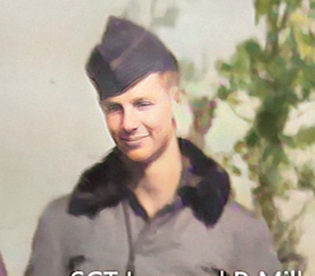 Leonard Paul “Hap” Mills was born on November 12, 1924, in Rush County, Kansas. He was the son of Raymond Guy Mills and Lydia L. Miller Mills. He was married to Georgia Eleanor Sloan Mills. He served in the 601st Bomber Squadron, 398th Bomb Group, Heavy, as a Sergeant and Tail Gunner in B-17G #43-37889 nicknamed ''Black Widow” during World War II.