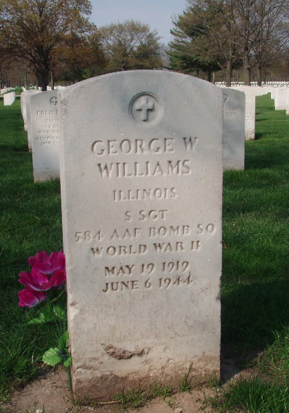 George W. Williams was born on May 19, 1919, in Illinois. He was the son of George and Elsie Williams. He worked as a mechanic and repairman for motor vehicles before enlisting in the service on January 3, 1942. He initially flew with the 322nd Bomb Group from Andrews Field, Essex, and survived a disastrous low-level bombing raid on Ijmuiden, Holland, in May 1943, where only two aircraft reached the target. His plane was later shot down into the North Sea by a German fighter, and Williams survived by clinging to a dinghy for four days before being rescued. After recovering, he was assigned to the 394th Bomb Group and joined the 584th Bomb Squadron at Boreham Airfield, serving as a crew member aboard B-26 Marauder #42-107592 “Stinky,” which flew from Station No. 161, Boreham Airfield, Essex, England during World War II.