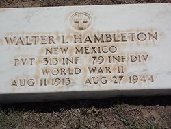Walter L. Hambleton was born on August 11, 1913 in Texas, USA. He served in the U.S. Army during World War II as a Private in the 313th Infantry Regiment, 79th Infantry Division. He died on August 27, 1944, was initially buried at Villeneuve-sur-Auvers in France and is now buried at Portales, Cemetery Portales, Roosevelt County, New Mexico, USA.
