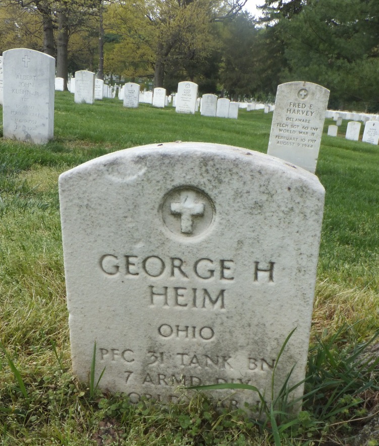 Pfc. George H. Heim age 34; died of wounds Aug. 29, 1944, in France during WWII. Husband of Dorothy C. of North Royalton, Ohio. He enlisted in the US Army March 27, 1942 at Ft Benjamin Harrison, Indiana after finishing 1 year of high school.