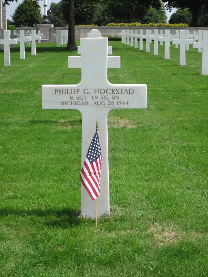 Phillip G. Hockstad was born on February 24, 1919. He served in the U.S. Army during World War II as a Master Sergeant in the 69th Signal Battalion. He entered service in Michigan. He died on August 28, 1944 and is now buried at Brittany American Cemetery, St. James, France.