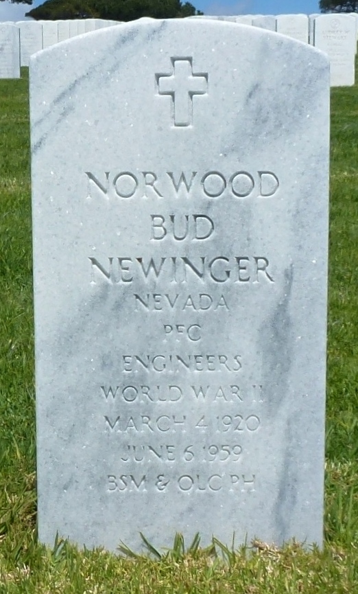 Norwood B. Newinger was born on March 4, 1920. He entered the military service in California. He served in the U.S. Army during the Normandy Invasion of World War II as a Private in B Company, 502nd Parachute Infantry Regiment, 101st Airborne Division. He died on June 6, 1959 and is now buried in Fort Rosecrans National Cemetery, San Diego, San Diego County, California, USA.