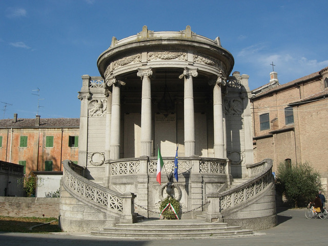 Located in the Monument for the Fallen in WW1 (Monumento ai Caduti) in the town center of San Felice Sul Panaro. San Felice is about 50 kilometers northwest of Bologna along SP 568 (Strada Provinciale di Crevalcore). Special thanks to the Associazione Aerei Perduti for their assistance with this site. http://www.aereiperduti.net)