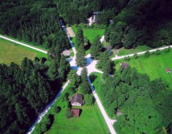 This eight-pointed star-shaped junction is comprised of a commemorative monument with the tomb of French Colonel O’Neill (commander of the resistance in the area) tomb at its front, a line of white cross cenotaphs, and two forester’s lodges, placed on different sections. American pilot CPT Edward K. Simpson, killed in the incident, is honored on the monument.