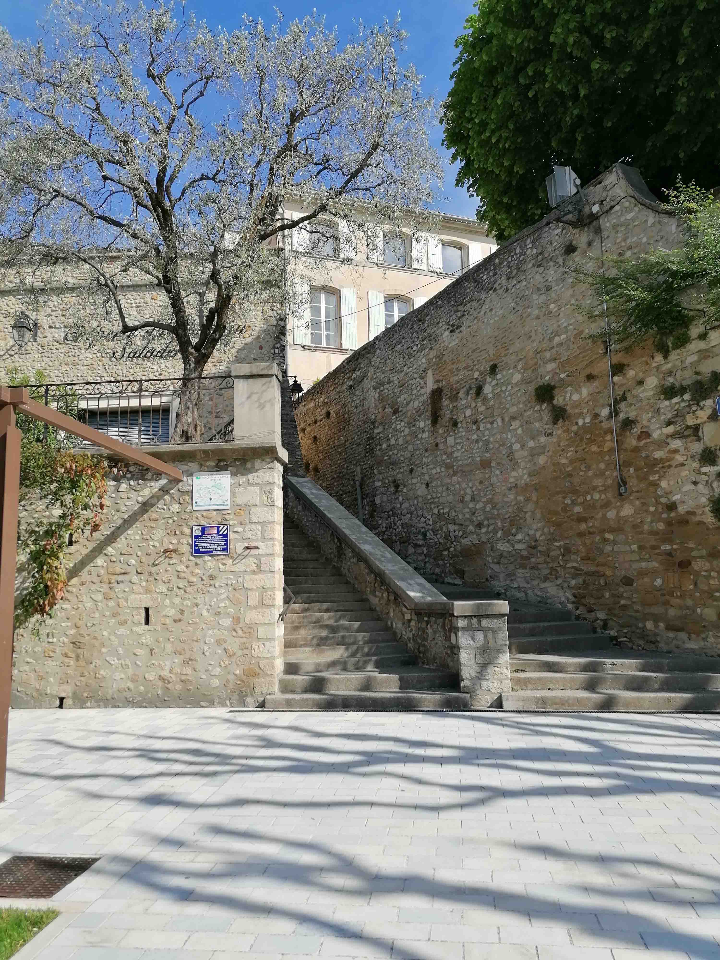 The site contains a plaque commemorating the town’s liberation in World War II.