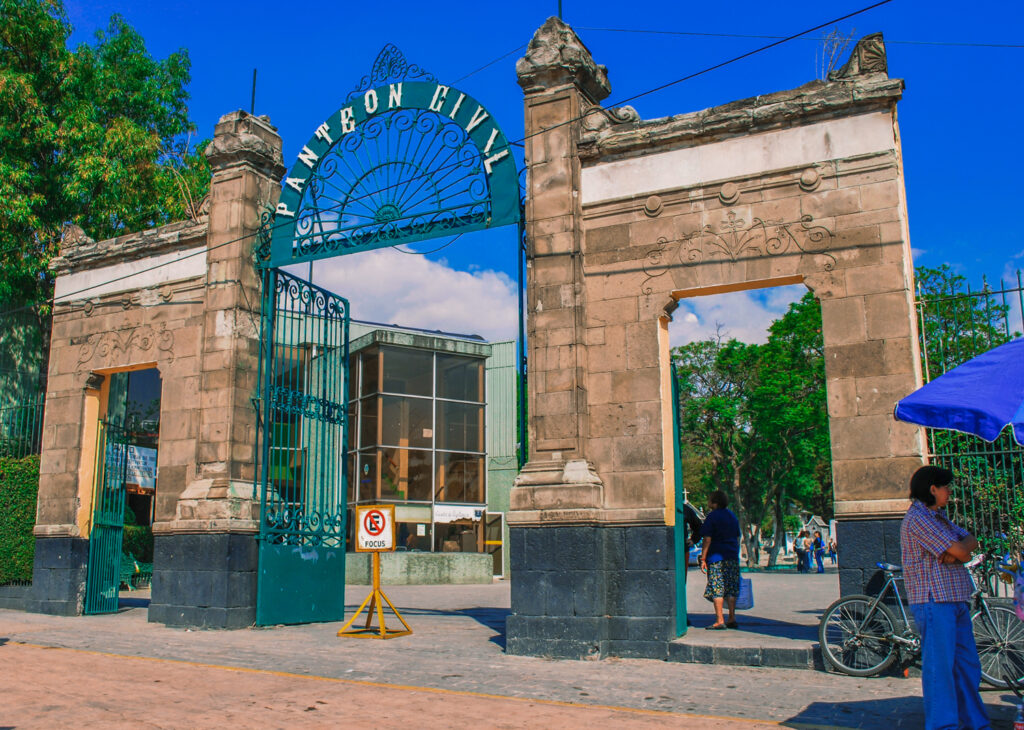 The Panteón de Dolores is located on the western corner of the Bosque de Chapultepec or Chapultapec Park. The main entrance is on Avenida Constituyentes. This entrance can be reached from the Metro Observatorio. A large green gate welcomes you into the cemetery with “Panteon Civil” emblazoned on the iron archway.
