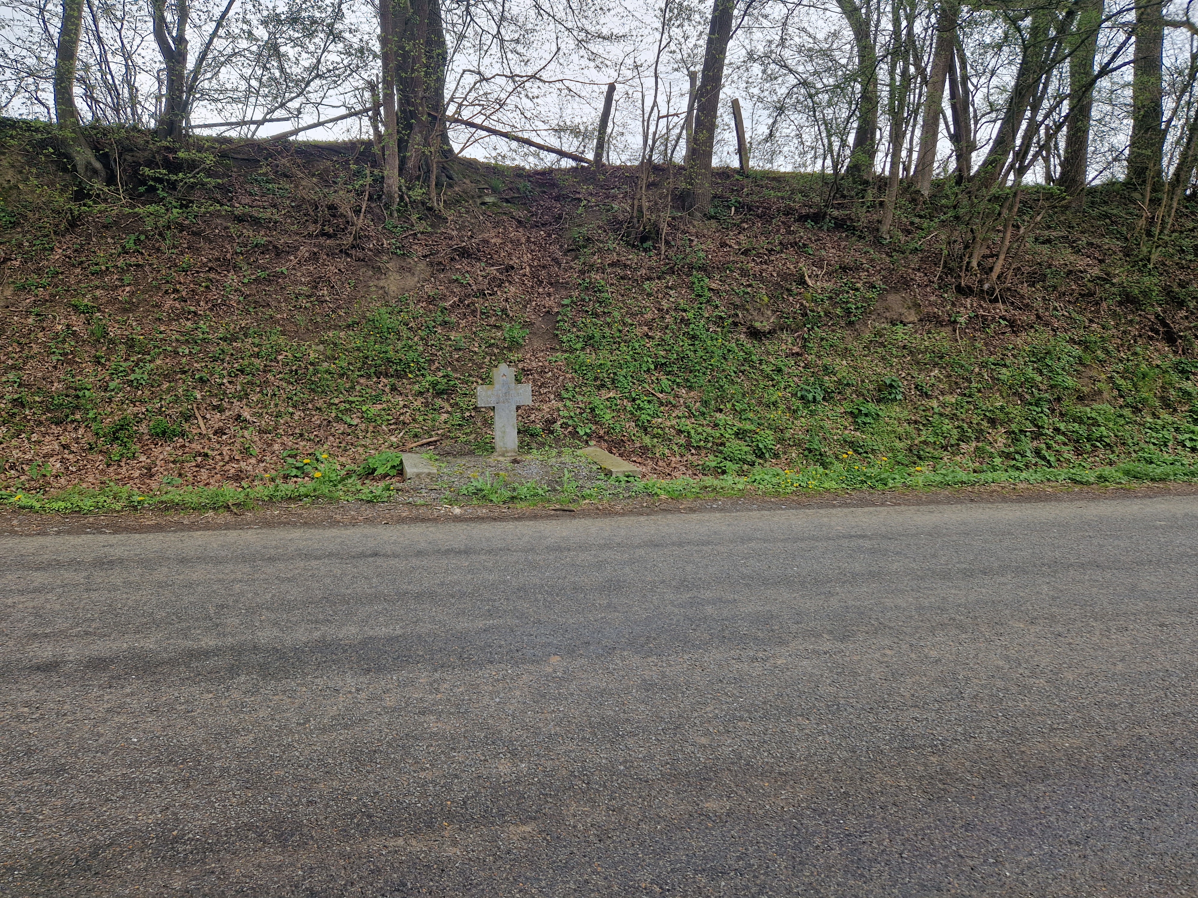 Stone cross is located on the northeast side of the road headed north. There is a area to park in on the southwest side of the road.