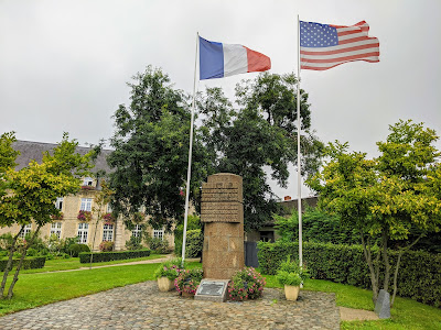 In the front yard of the town hall is a monument commemorating the American soldiers of the 101st Airborne Division who died during the liberation of the town in World War II.