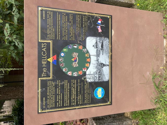 The memorial rememberes the 12th Armored Division - "The Hellcats" that fought here during enemy offensive, "Operation Norwind" in January and February 1945. The division was commanded by Major General Roderick R. Allen who is quoted on the memorial.