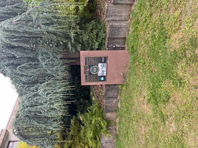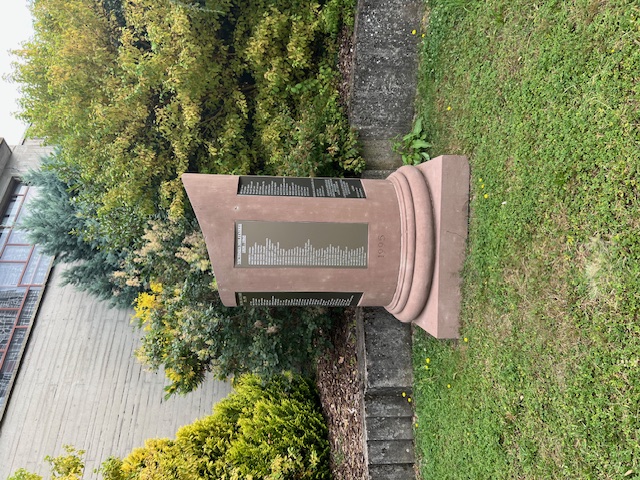 MonumentA cut redstone with an inscribed plaque attached to the front.