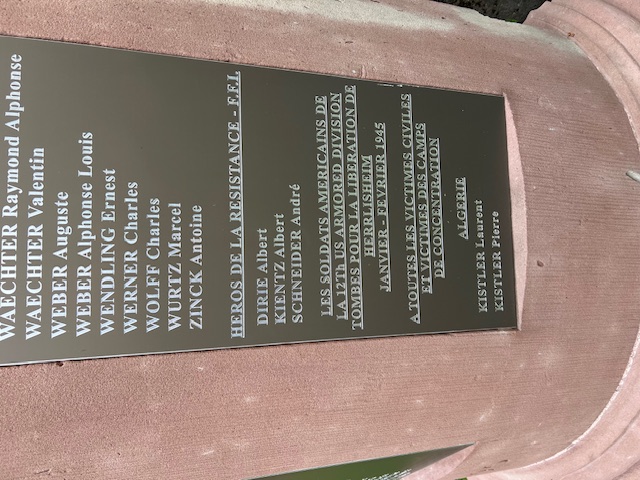 The town war memorial also includes a rememberance of the 12th Armored Division in French. The English Transaltion is:
