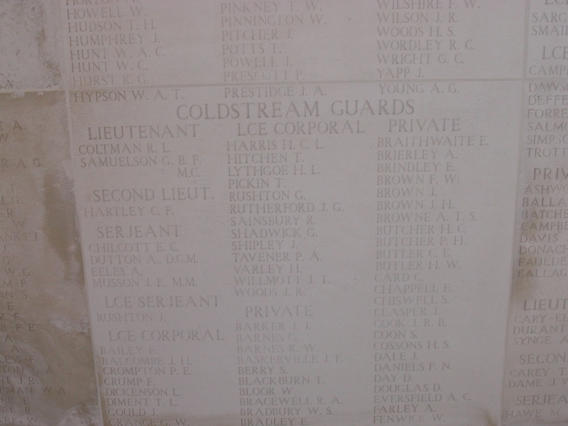 2LT Charles Fletcher Hartley Cenotaph- Coldstream Guards