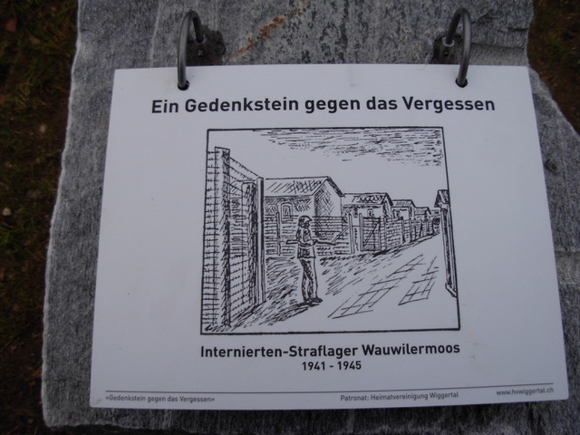 The memorial remembers those interned in Camp Wauwilermoos, also known as Straflager Wauwilermoos or Punishment Camp, during World War 2.