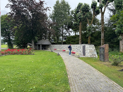 MonumentAn upright granite stele monument with a central black plaque commemorating the American prisoners of war captured during the German counteroffensive on December 17, 1944, at Baugnez Crossroads near Malmedy, Belgium, who were executed by SS troops in what became known as the Malmedy Massacre; the inscription, presented in both English and French, honors their sacrifice during the Battle of the Bulge.