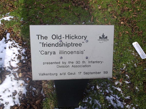 The tree remembers the friendship between the town of Valkenburg and the 30th Infantry Division. The 30th "Old Hickory" Infantry Divsion liberated the town on September 17, 1944.