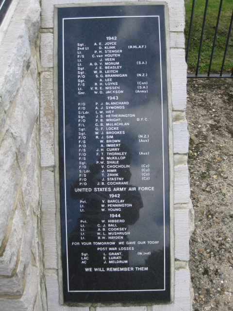 F/O F/O S.Ldr. Sgt. F/O F/L Sgt. Sgt. F/O F/S P/O F/S F/O F/S Sgt. F/O S/Ldr. F/S F/O P/O | P.J. A.J. L.W. J.S. P.B. G.B. G.F. W.J. R.J. W. A. J.H. F.T. R. P.W. V. J. T. J. J.B. | Blanchard Symonds Ivey Hetherington Wright McLachlan Locke Brookes Sim Brown Imbert Curry Thornley McKillop Shale Chocholin Himr Zrnik Stastny Cochrane |