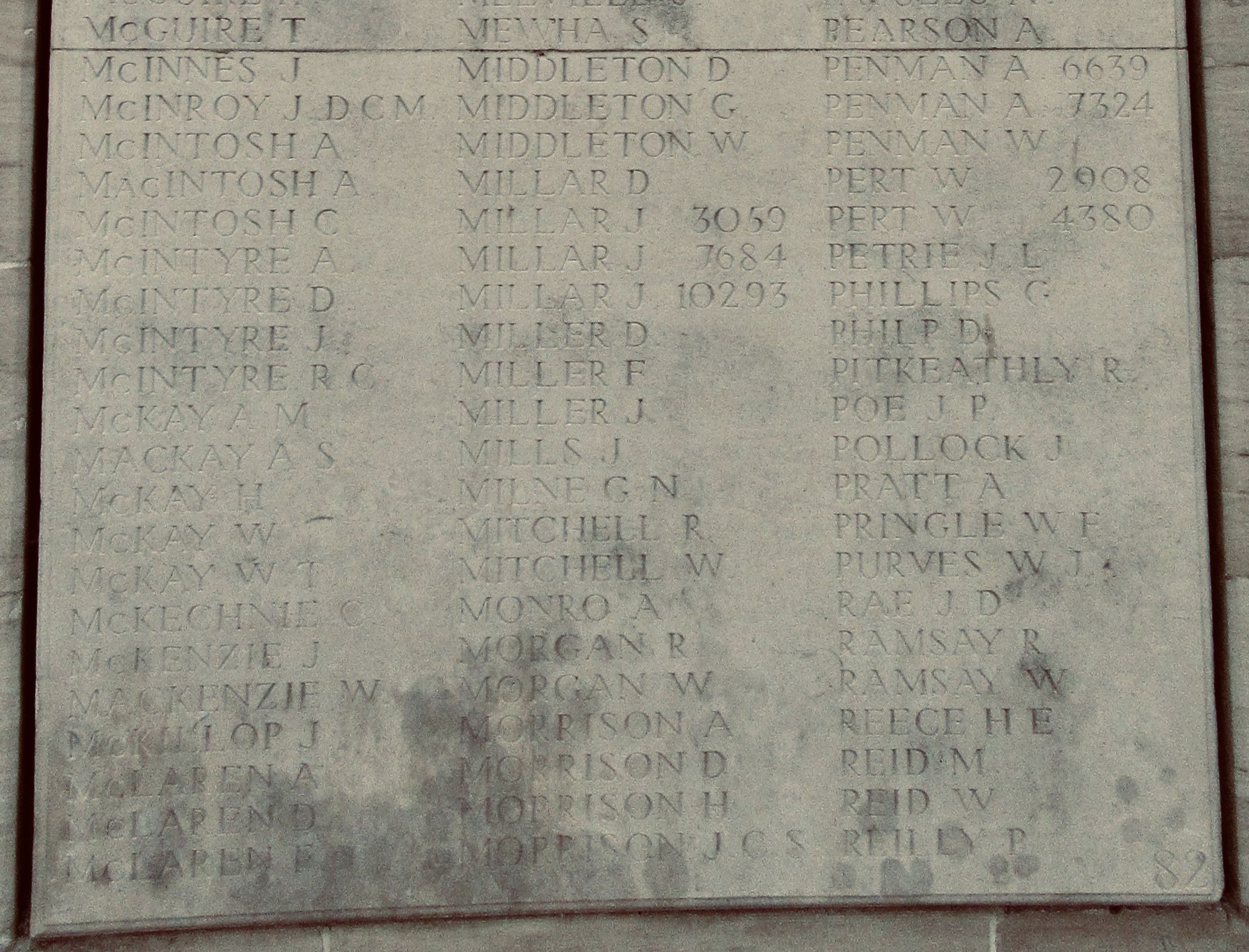 He is remembered on the Wall of Missing along with 20,000 other British Army missing at the Loos Memorial in France.