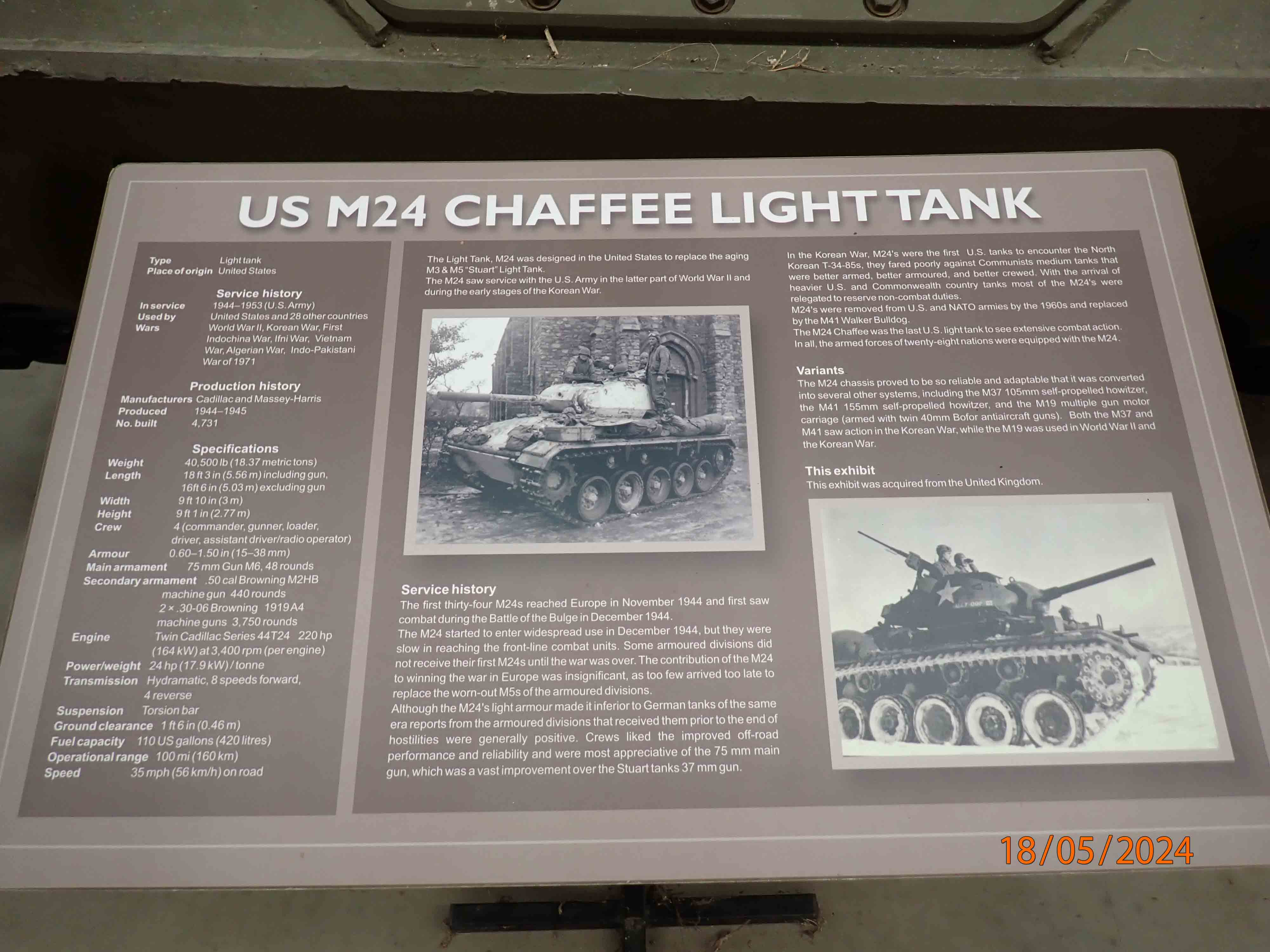 The Light Tank, M24 was designed in the United States to replace the aging M3 and M5 ''Stuart'' Light Tank.