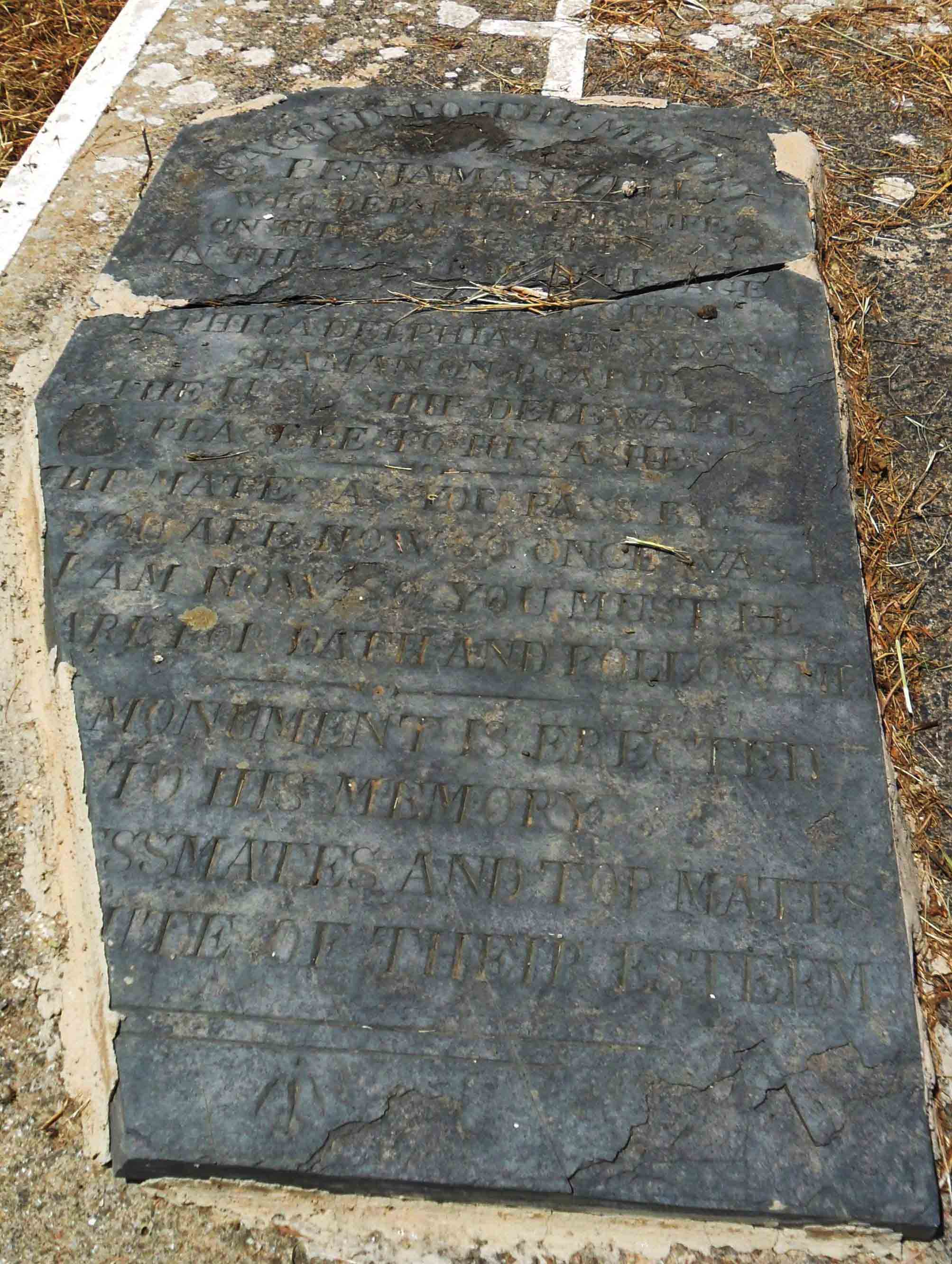 A rectangular tomb with a flat, slightly elevated top, featuring a large marker set horizontally on its