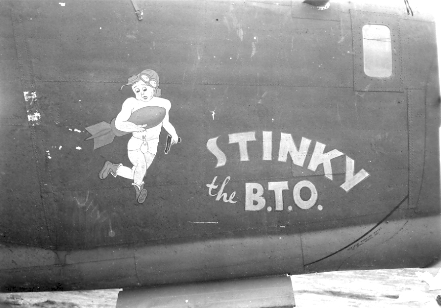 The memorail remebers the B-24 'Stinky the B.T.O' (42-64462) -'Big Time Operator' of the 716th Bomber Squadron, 449th Bomber Group, 15th US Air Force. Flying from the Grottaglie field in Southern Italy, the B. T. O. with Brownings crew aboard blew up when hit by flak bursts and FW-190 and ME-109 aircraft as she was returning from the 22 February 44 mission to Regensburg, Germany. 3 KIA 7 POW. MACR 2636.